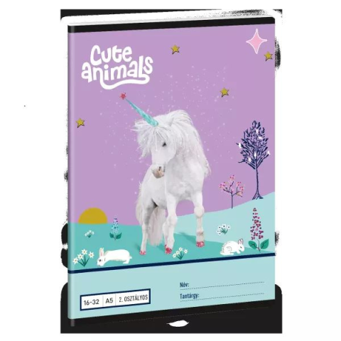 Ars Una: Cute Animals - Unikornis mintás 2. osztályos vonalas füzet A/5 16-32