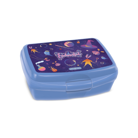 Az Ars Una Enchanted uzsonnás doboz egy varázslós mintával díszített zárható műanyag tároló, mely ideális választás iskolába, óvodába vagy kirándulásokhoz. Kék alapon található boszorkányos témájú minta varázslatos hangulatot kölcsönöz a doboznak, így gyermeked minden nap örömmel fogja használni.