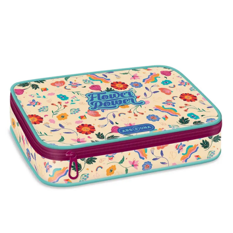 A Flower Power többszintes tolltartó egy színes, vidám és praktikus megoldás minden kisiskolás lánynak, aki szereti a virágos mintákat és a rendszerezett iskolai felszerelést. A pasztell alapszínt élénk, különféle virágminták díszítik, amit a "Flower Power" felirat koronáz meg – igazi stílusos kiegészítő az iskolatáskában! A tolltartó háromszintes