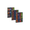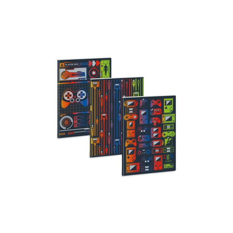 A/4-es méretű, prémium minőségű vonalas füzet. 40 lapos, belseje 75 gr-os, fehér papírból, minden oldala margózott. Borítója lekerekített sarkokkal, 350 gr-os fényes műnyomó kartonra, 4 szín nyomással készült. Különböző mintájú füzetek a 10-es fólia csomagon belül vegyesen csomagolva, a füzeteknek megegyezik a kódja. Minta nem választható!