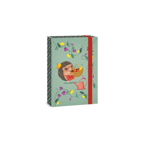 A/4 méretű füzetbox. Kemény, tartós kartonból, 4 cm-es gerinccel, fényes fóliával, 7 mm széles gumipánttal. Belseje egy színnel nyomott. Füzetek, iratok tárolására .