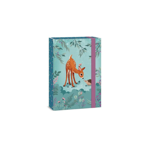 A/4 méretű füzetbox. Kemény, tartós kartonból, 4 cm-es gerinccel, fényes fóliával, 7 mm széles gumipánttal. Belseje egy színnel nyomott. Füzetek, iratok tárolására .