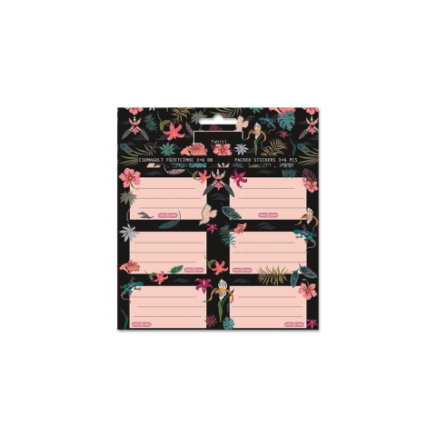Öntapadós papír füzetcímke, egy csomagban különböző mintákkal. 3 ív x 6 db, összesen 18 db található. Felakasztható fejléccel.