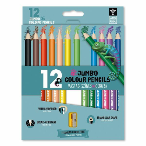 Ars Una Jumbo háromszögletű színes ceruza hegyezővel - 12 db-os színes ceruza 1 kép