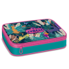 Élénk színű, vidám dzsungeles grafikával díszítettük ezt a klassz tolltartót, amelyet alsós lányoknak ajánlunk. Belsejében a hagyományos írószertartók mellett plusz zsebet is elhelyeztünk a kiegészítő írószerek és kincsek számá