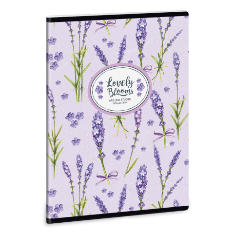 Szép, levendulás mintával díszített, A/5-ös prémium minőségű négyzethálós füzet. Belseje 40 lapos, 70 gr-os, szép fehér papírból, margózott oldalakkal, 200 gr-os borítóján 3D formalakkal