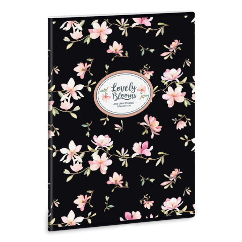 Lovely Blooms, Magnolia Szép, magnóliás virágmintával díszített, A/4-es, prémium minőségű négyzethálós füzet. Belseje 40 lapos, 70 gr-os, fehér papírból, margó nélküli oldalakkal, 300 gr-os borítóján 3D formalakkal