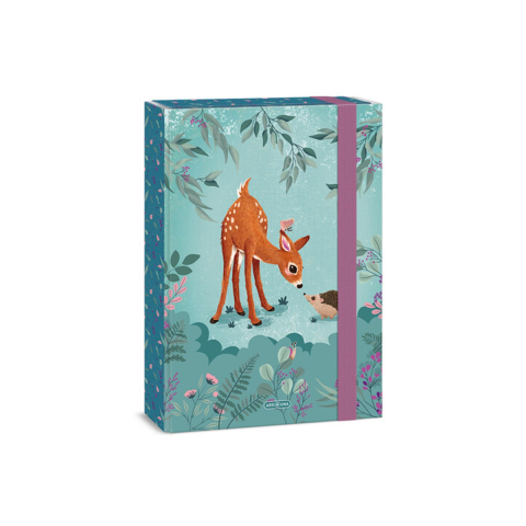 Az Ars Una "My Secret Garden" A4 füzetboxa bájos és gyengéd dizájnnal hódít, melyen egy cuki őzike és süni barátságát örökíti meg. A box tökéletes választás az iskolai füzetek és iratok rendezett tárolásához, biztosítva, hogy a legfontosabb jegyzetek mindig kéznél legyenek, ráadásul stílusos módon. A stabil kartonból készült füzetbox nemcsak praktikus, de a padlózat