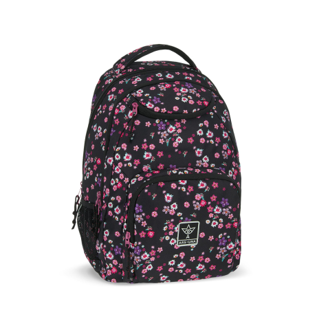 Ars Una: Pearl Blossom Black virágos AU-6 iskolatáska, hátizsák 34x45x26cm