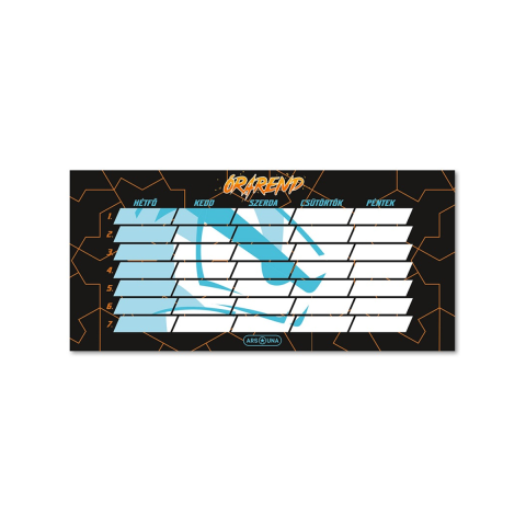 Ismerd meg az Ars Una Player One órarendjét, amely egy dinamikus és stílusos kiegészítő minden gamer diák számára. Ez az órarend fekete alapon narancssárga vonalas mintával van díszítve, így nemcsak praktikus, hanem vagány és modern megjelenést is biztosít, ami minden napodat feldobja.