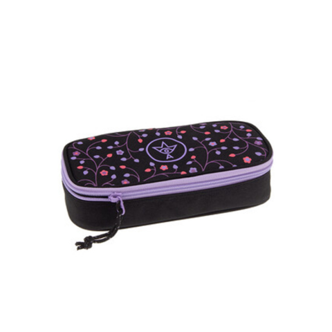 A fekete alapszínű tolltartó lila színű cipzárral és szintén lila virágos mintával rendelkezik amely igazán divatos megjelenést kölcsönöz használója számára az iskolai mindennapok során. A tolltartó 100% poliészter anyagból készült amelynek köszönhetően könnyedén tisztítható és strapabíró. A tolltartó egy kihajtható belső zsebbel is rendelk