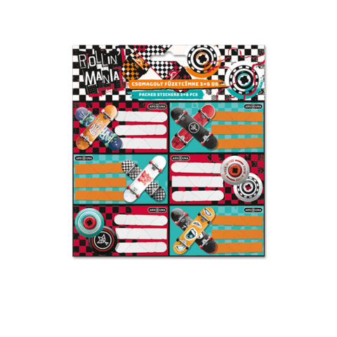 Ars Una: Rollin Mania görkorcsolya mintás csomagolt füzetcímke 3x6db-os