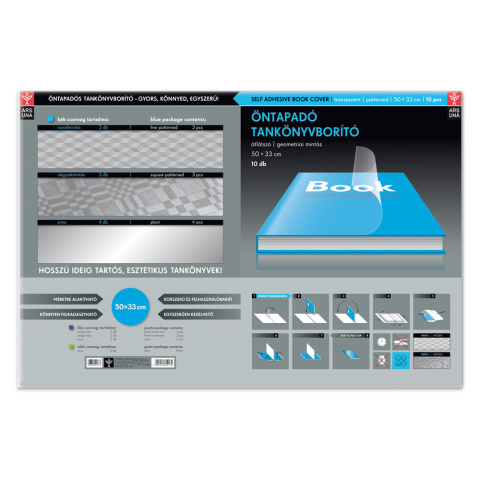 Ars Una Tankönyvborító öntapadó, 50x33cm, 10 ív/csomag, Ars Una, geometrikus
