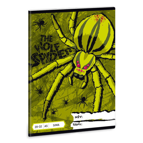 The Wolf Spider-kollekció 2016. Kalandozz velünk a tanulás világában minden nap, és vidd magaddal kedvenc pókos grafikával díszített füzetedet! A/5-ös méretű sima iskolai füzet margózott oldalakkal, lekerekített füzetlapokkal és tartós