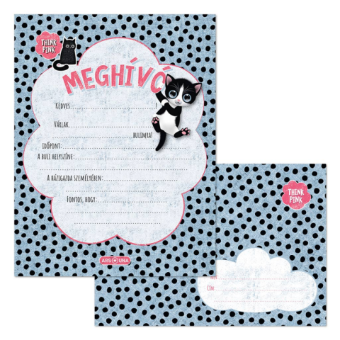 1 kép Ars Una : Think Pink cicás 10 db-os meghívó szett borítékkal