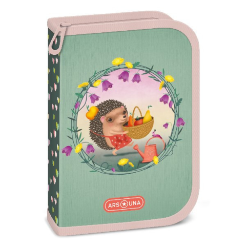 Tolltartó ARS UNA felszerelt Apple Pie Írószerekkel töltött cipzáros tolltartó két kihajtható füllel, gumis kialakítással az írószerek tárolásához. Tartalma: 12 db színes ceruza, 3 db HB grafit ceruza, 1 vékony és 1 vastag postairón, 8 db színes filcto