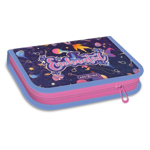 Tolltartó ARS UNA felszerelt Enchandet Írószerekkel töltött cipzáros tolltartó két kihajtható füllel, gumis kialakítással az írószerek tárolásához. Tartalma: 12 db színes ceruza, 3 db HB grafit ceruza, 1 vékony és 1 vastag postairón, 8 db színes filcto