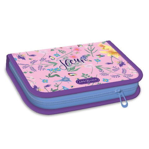 Tolltartó ARS UNA felszerelt Fleur Írószerekkel töltött cipzáros tolltartó két kihajtható füllel, gumis kialakítással az írószerek tárolásához. Tartalma: 12 db színes ceruza, 3 db HB grafit ceruza, 1 vékony és 1 vastag postairón, 8 db színes filctoll,
