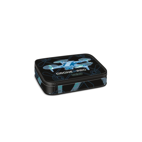 Többszintes, töltetlen, cipzáras tolltartó. Belül textillel bevont merev lapokkal, gumis kialakítással 30 ceruza számára az írószerek tárolásához és egy cipzáras belső zsebbel.