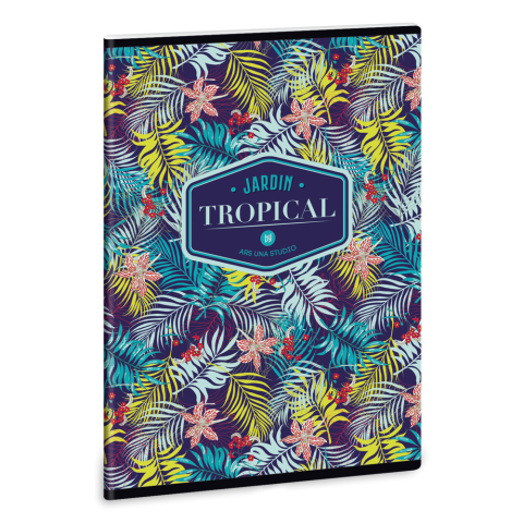 Trópusi grafikával díszített, A/5-ös, prémium minőségű vonalas füzet. Belseje 40 lapos,70 gr-os,fehér papírból, margózott oldalakkal, 200 gr-os borítóján 3D formalakkal