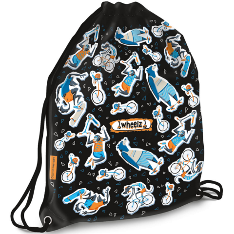 Az Ars Una Wheelz tornazsák új színt hoz a sportos stílusba! Ha szereted a vagányságot és az állatokat, akkor ez a tornazsák neked lett tervezve. A fekete alapon büszkén pózoló gördeszkázó és bicikliző állatok azonnal megragadják a figyelmet. Különlegességüket az adja, hogy laza és vagány ruhákba vannak öltözve, így egy igazán egyedi és lendületes hangulato