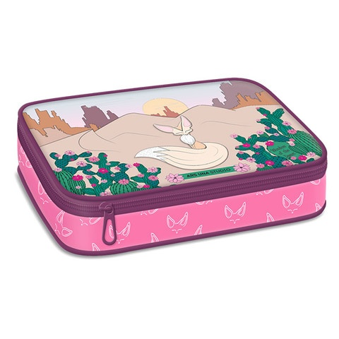 Bájos sivatagi rókás grafikával díszítettük ezt a klassz tolltartót, amelyet alsós lányoknak ajánlunk. Belsejében a hagyományos írószertartók mellett plusz zsebet is elhelyeztünk a legfontosabb írószerek és kincsek számára. Olvass r