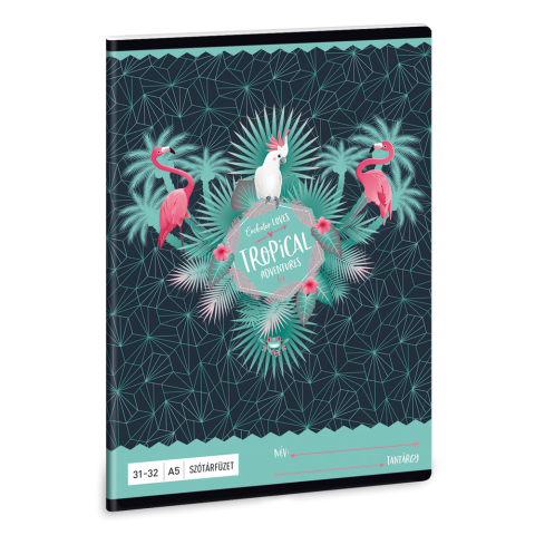 Pink Flamingo A/5-ös méretű szótárfüzet. 32 lapos, belseje 70 gr-os papírból. Borítója 200 gr-os műnyomó kartonra lekerekített sarkokkal, fényes fóliázással, 4 szín