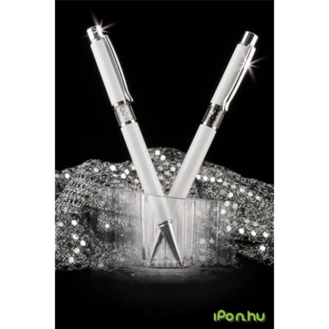 ART CRYSTELLA Golyóstoll Crystals from SWAROVSKI középen fehér kristályokkal töltve 14cm fehér toll termékleírás