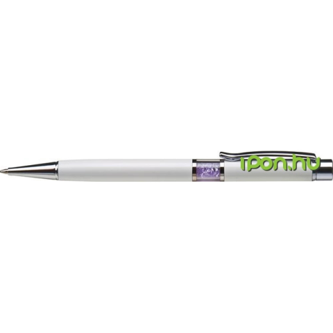 - Középen kristályos golyóstoll - Fehér színű tolltest 14 cm - Fém toll, logózható - Lézergravírozható - Középen orgona lila színű, eredeti Swarovski kristállyal töltve - Cserélhető tollbetéttel -...