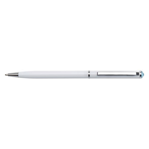 Golyóstoll, fehér SLIM, aquakék SWAROVSKI® kristállyal, 13 cm, ART CRYSTELLA® (TSWGS556) Klasszikus kivitelű, eredeti Swarovski® kristállyal díszített golyóstoll. Rendkívül kedvező ár-érték arány. A tolltest fém, logózható, lézergravírozható. Tolltest