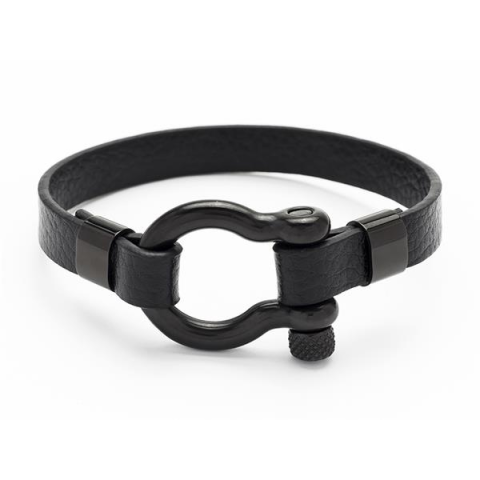 Elegáns bőr karkötő. Fekete bőrből, fekete színű sekli zárral. Általános férfi méretben, kb. 6mm vastag. Csomagolás: ajándéktasakban.
