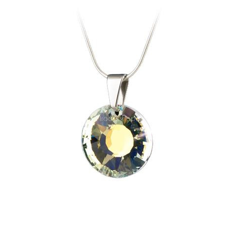 Nyaklánc, Nap formájú, fehér színjátszós SWAROVSKI® kristállyal, 19mm, ART CRYSTELLA® A divatos, nap SWAROVSKI® kristályból készült medál kiváló ajándék hölgyeknek bármilyen ünnepélyes alkalomra. A medál mérete 19mm. A kristály színe: fehér színjátszós