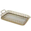 A(z) Lekerekített áttört óarany színű fogantyús fém tálca tükrös tálcalappal 10,5x52x27,5cm egy stílusos és igényes darab fém, üveg anyagból készült aranysárga színben , mérete: 10,5x52x27,5cm . A termék a(z) ART-POL márka kínálatából származik , eredeti