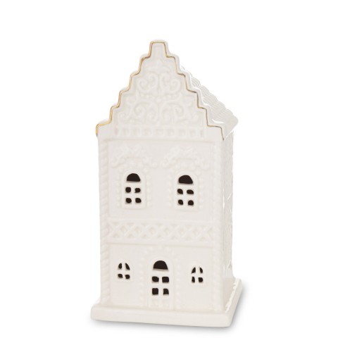 Art-Pol Karácsonyi letisztult aranyszegélyes díszes mécsestartó kerámiaházikó asztali dekoráció 15,5x8x7cm