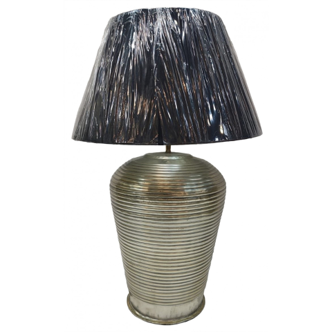 A(z) Ezüstszín kerek barázdált mintás alumínium asztali lámpa éjfekete lámpaernyővel 64x41x41cm egy stílusos és igényes darab alumínium, szövet anyagból készült ezüst, fekete színben , mérete: 64x41x41cm . A termék a(z) ART-POL márka kínálatából származik