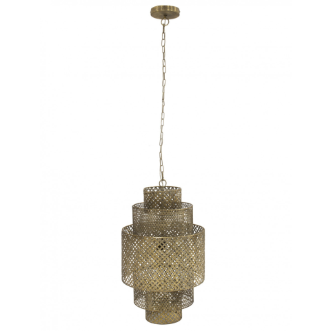 A(z) Indiai jellegű óarany hengeres áttört fém mennyezeti lámpa 62-130x36x36cm egy stílusos és igényes darab fém anyagból készült aranysárga színben , mérete: 62-130x36x36cm . A termék a(z) ART-POL márka kínálatából származik , eredeti származási helye: L