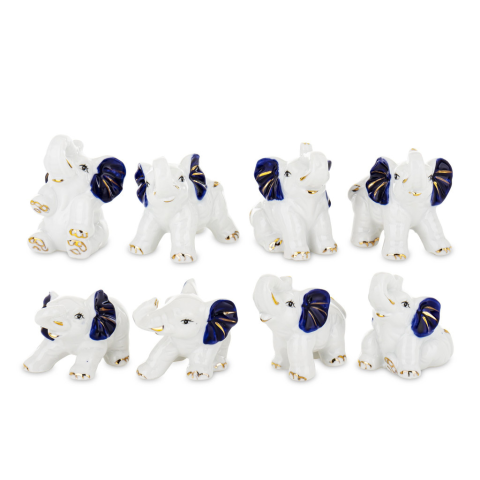 A(z) Figurák 8 Elefánt Kerámia Kék, Fehér, Arany 6,5x5x4cm egy stílusos és igényes darab kerámia anyagból készült kék, fehér, arany színben , mérete: 6,5x5x4cm . A termék a(z) ART-POL márka kínálatából származik , eredeti származási helye: Lengyelország.