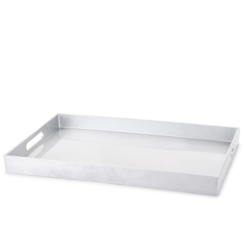 A(z) Tulum design ezüst műanyag fogantyús szögletes tálca 4x46x30cm egy stílusos és igényes darab műanyag anyagból készült ezüst színben , mérete: 4x46x30cm . A termék a(z) ART-POL márka kínálatából származik , eredeti származási helye: Lengyelország.