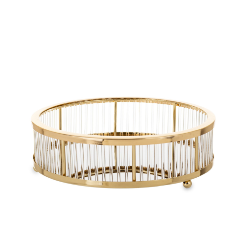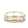 A(z) Glamour design kecses kerek sárgaarany fém tálca lábakon üvegfelülettel és díszítéssel 8x25x25cm egy stílusos és igényes darab fém, műanyag anyagból készült arany, víztiszta színben , mérete: 8x25x25cm . A termék a(z) ART-POL márka kínálatából szárma