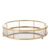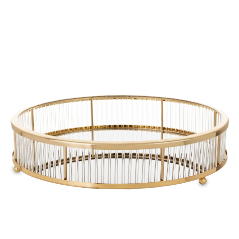 A(z) Glamour design kecses kerek sárgaarany fém tálca lábakon üvegfelülettel és díszítéssel 8x35x35cm egy stílusos és igényes darab fém, műanyag anyagból készült arany, víztiszta színben , mérete: 8x35x35cm . A termék a(z) ART-POL márka kínálatából szárma
