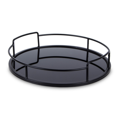 A(z) Glamour design kerek fogantyús fekete üveglapos tálca 7x32x32cm egy stílusos és igényes darab fém, üveg anyagból készült fekete színben , mérete: 7x32x32cm . A termék a(z) ART-POL márka kínálatából származik , eredeti származási helye: Lengyelország.