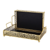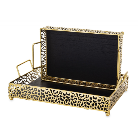 A(z) Glamour design aranyszín szögletes 2db-os fém tálca szett barna fa tálcalappal 10x38x25 / 10x33x20cm egy stílusos és igényes darab fém, fa anyagból készült arany, fekete színben , mérete: 10x38x25cm . A termék a(z) ART-POL márka kínálatából származik