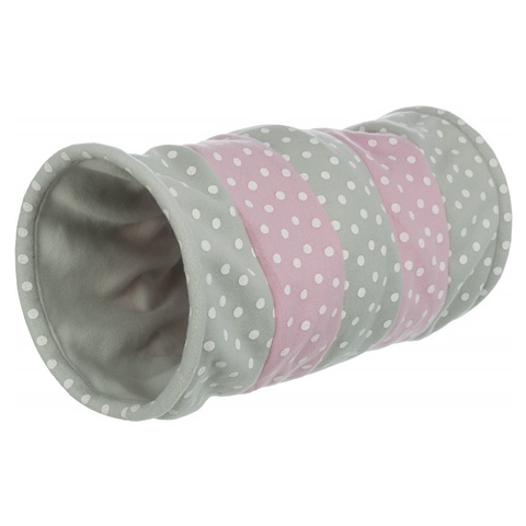 Gyapjú játék alagút bújó zörgőfóliával cicáknak.Mérete: 25 x 50 cm