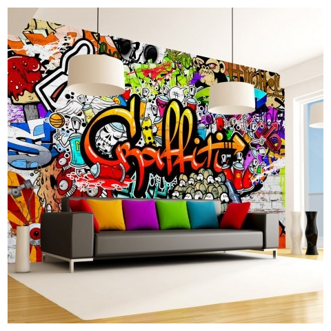f-A-0348-a-b Tartós, víz és karcálló, falra ragasztható Colorful Graffiti flíz fotótapéta. Az inspiráló motívummal ellátott Colorful Graffiti című fotótapéta hatásosan díszít minden helyiséget. A flíz tapéták ragasztással kerülnek rögzítésre. Minden he
