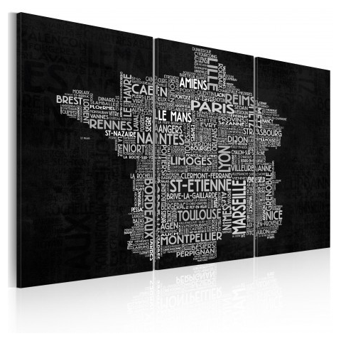 1 kép Artgeist Kép - Text map of France on the black background - triptych