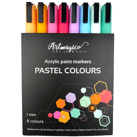 1 kép Artmagico akril filctollak vékony hegy - pasztell - 8 darab