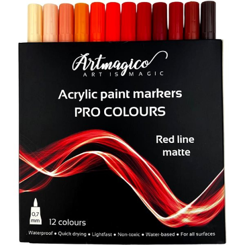Teljes Artmagico Pro Red Line Akrillfesték filctoll, piros árnyalatok, 12 db termékleírás