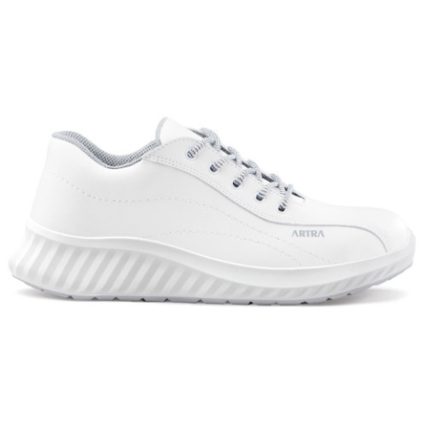 Az ARTRA ARAWA 6217 S2 SRC fehér félcipő acél orrmerevítővel, antibakteriális béléssel és memóriahabos talpbetéttel biztonságot és kényelmet nyújt munkavégzés közben. Felsőrész: hidrofób mikroszál MICRO PRO 2,2 mm növeli az ellenálló képességet és a lé