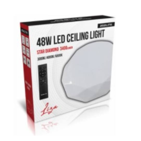 1 kép Asalite LED 48W 3-4-6.5K MENNYEZETI LÁMPA GYÉMÁNT CSILLAGOS+TÁVIRÁNYÍTÓ LIZA