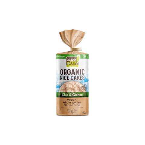 Rice Up! Szelet 120 g – Chia mag-Quinoa Könnyű, ropogós és tápláló snack, amelyet mindig kéznél tarthatsz. A Rice Up! Szelet 120 g Chia mag-Quinoa változata természetes összetevőkből készült, hogy energiát adjon a nap folyamán. Fő jellemzők 120 g